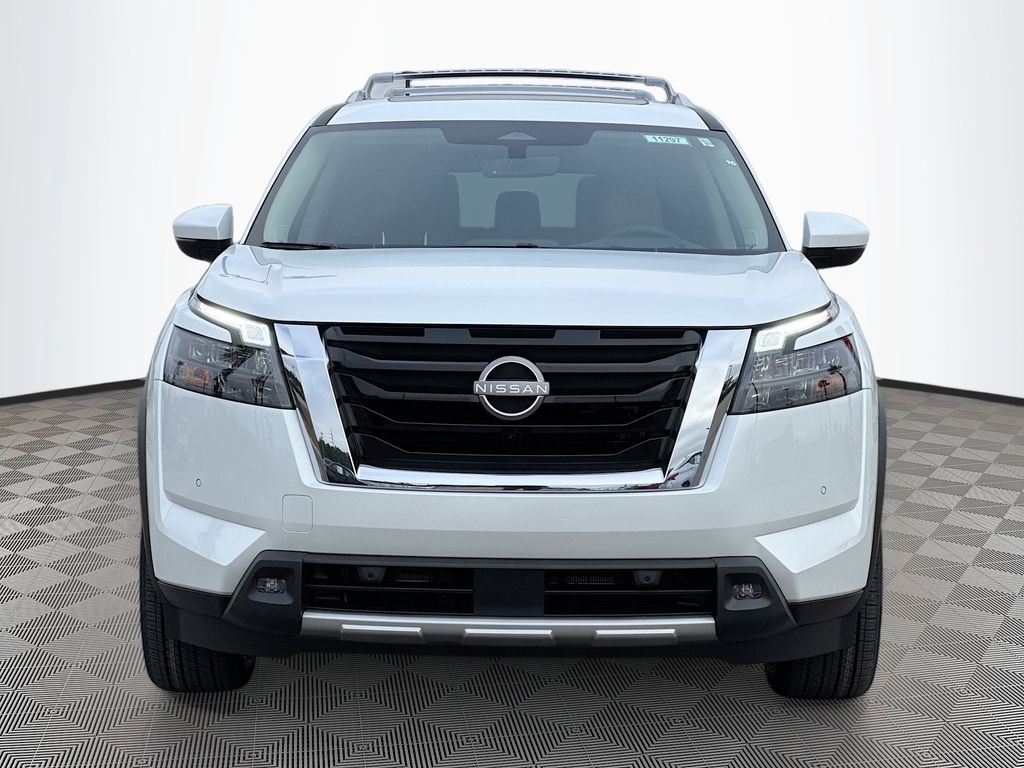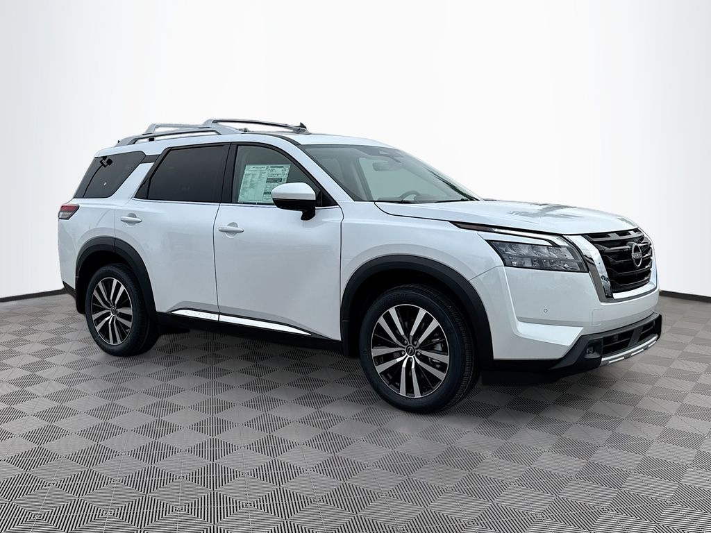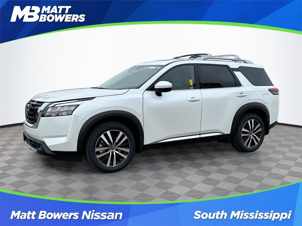 Matt Bowers Nissan of South Mississippi is proud to offer this superb-looking 2025 Nissan Pathfinder in Everest White Pearl Tricoat This vehicle has passed our comprehensive inspection with flying colors and comes with the following features; Cargo Package (Cargo Area Protector, Cargo Net, and First Aid), Platinum Captain Chairs Package (2nd-Row Captain Chairs and 2nd-Row Rear Headrest), 4WD, 13 Speakers, 3rd row seats: bench, 4-Wheel Disc Brakes, ABS brakes, Air Conditioning, Alloy wheels, AM/FM radio: SiriusXM, Auto High-beam Headlights, Auto tilt-away steering wheel, Auto-dimming Rear-View mirror, Automatic temperature control, Bodyside moldings, Bose Premium Audio System, Brake assist, Bumpers: body-color, Captain's Chairs Carpeted Floor Mats (set of 4), Climate Controlled Front Bucket Seats, Cross Bars, Delay-off headlights, Driver door bin, Driver vanity mirror, Dual front impact airbags, Dual front side impact airbags, Electronic Stability Control, Emergency communication system, Exterior Parking Camera Rear, Four wheel independent suspension, Front anti-roll bar, Front Bucket Seats, Front Center Armrest, Front dual zone A/C, Front reading lights, Fully automatic headlights, Garage door transmitter: HomeLink, Heads-Up Display, Heated door mirrors, Heated front seats, Heated rear seats, Heated steering wheel, Illuminated entry, Knee airbag, Leather steering wheel, LED Fog Lamps, Low tire pressure warning, Memory seat, Navigation system: NissanConnect with Navigation and Services, NissanConnect featuring Apple CarPlay and Android Auto, NissanConnect with Navigation and Services, Occupant sensing airbag, Outside temperature display, Overhead airbag, Overhead console, Panic alarm, Passenger door bin, Passenger vanity mirror, Power door mirrors, Power driver seat, Power Liftgate, Power moonroof, Power passenger seat, Power steering, Power windows, Premium Paint, Radio data system, Radio: AM/FM Audio System, Rain sensing wipers, Rear air conditioning, Rear anti-roll bar, Rear reading lights, Rear seat center armrest, Rear side impact airbag, Rear window defroster, Rear window wiper, Reclining 3rd row seat, Remote keyless entry, Security system, Semi-Aniline Leather-Appointed Seating Surfaces, Speed control, Speed-sensing steering, Speed-Sensitive Wipers, Split folding rear seat, Spoiler, Steering wheel memory, Steering wheel mounted audio controls, Tachometer, Telescoping steering wheel, Tilt steering wheel, Traction control, Trip computer, Turn signal indicator mirrors, Variably intermittent wipers, Ventilated front seats, and Wheels: 20" x 8J Machined Alloy. 4WD.