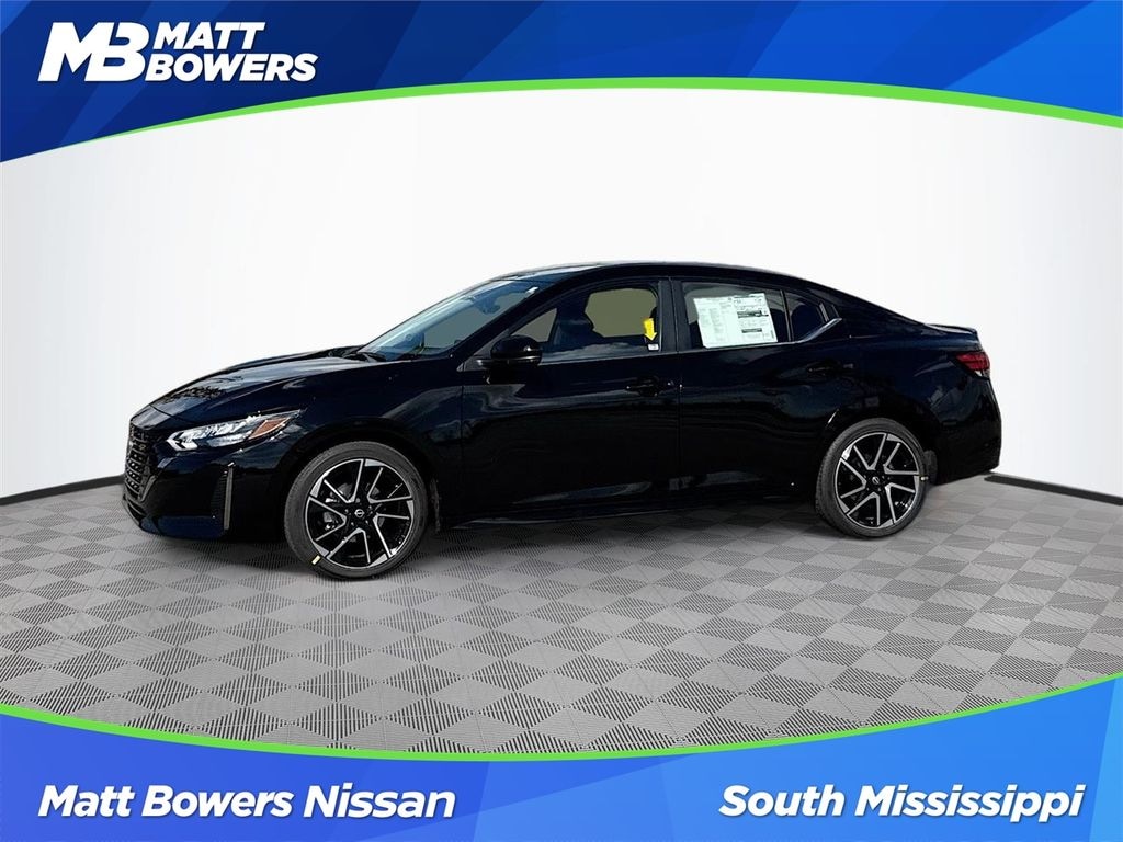Matt Bowers Nissan of South Mississippi is proud to offer this great 2025 Nissan Sentra in Super Black This vehicle has passed our comprehensive inspection with flying colors and comes with the following features; Trunk Package (Hide-A-Way Trunk Net), CVT with Xtronic, Sport Cloth, 18" Alloy Wheels, 4-Wheel Disc Brakes, 8 Speakers, ABS brakes, Air Conditioning, Alloy wheels, AM/FM radio: SiriusXM, Auto High-beam Headlights, Automatic temperature control, Blind Spot Warning, Brake assist, Bumpers: body-color, Clear Rear Bumper Protector, Delay-off headlights, Door Sill Plates, Driver door bin, Driver vanity mirror, Dual front impact airbags, Dual front side impact airbags, Electronic Stability Control, Four wheel independent suspension, Front anti-roll bar, Front Bucket Seats, Front Center Armrest, Front dual zone A/C, Front reading lights, Fully automatic headlights, Heated door mirrors, Heated Front Bucket Seats, Heated front seats, Illuminated entry, Knee airbag, Leather Shift Knob, Low tire pressure warning, NissanConnect featuring Apple CarPlay and Android Auto, Occupant sensing airbag, Outside temperature display, Overhead airbag, Overhead console, Panic alarm, Passenger door bin, Passenger vanity mirror, Power door mirrors, Power steering, Power windows, Radio data system, Rear anti-roll bar, Rear Parking Sensors, Rear seat center armrest, Rear side impact airbag, Rear window defroster, Remote keyless entry, Security system, Speed control, Speed-sensing steering, Split folding rear seat, Spoiler, Sport Cloth Seat Trim, Steering wheel mounted audio controls, Tachometer, Telescoping steering wheel, Tilt steering wheel, Traction control, Trip computer, Turn signal indicator mirrors, and Variably intermittent wipers. CVT with Xtronic, Sport Cloth.