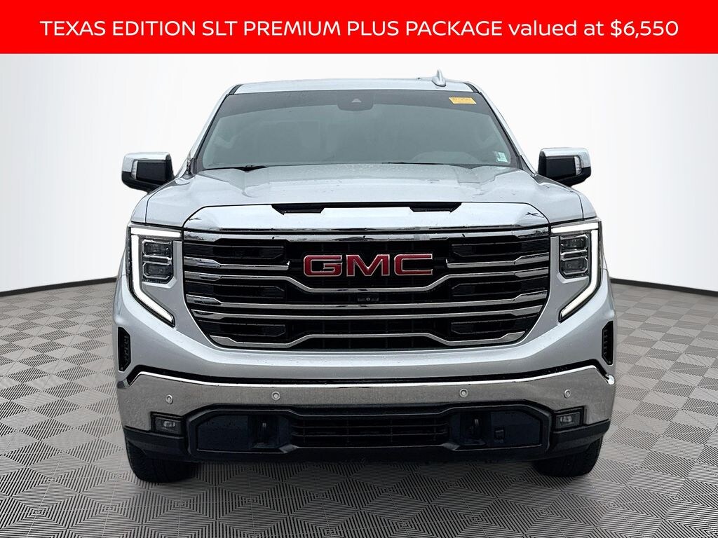 Stepping inside, you'll be greeted by a wealth of premium features, including a Navigation System, Premium Bose 7-Speaker Sound System, Heated Steering Wheel, and Ventilated Front Seats. The Wireless Charging and Trailer Camera Provisions further enhance your connectivity and convenience. With the Texas Edition SLT Premium Plus Package, you'll enjoy a host of additional upgrades, from the striking 20" Polished Aluminum Wheels to the stylish Chrome Assist Steps.