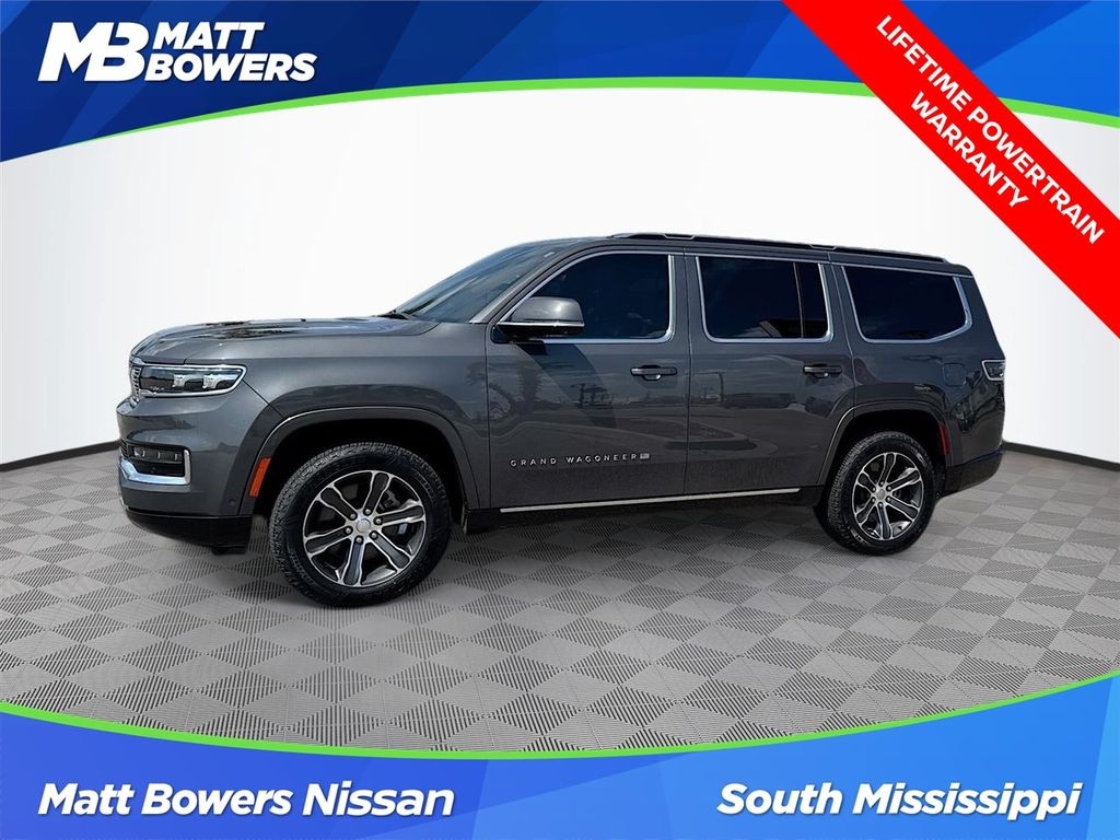 Matt Bowers Nissan of South Mississippi is proud to offer this terrific-looking 2022 Jeep Grand Wagoneer in Baltic Gray Metallic Clearcoat This vehicle has passed our comprehensive inspection with flying colors and comes with the following features; Quick Order Package 23S, Two Tone Paint Group, 19 Speakers, 3.92 Rear Axle Ratio, 3rd row seats: bench, 4-Wheel Disc Brakes, ABS brakes, Adjustable pedals, Air Conditioning, Alloy wheels, AM/FM radio: SiriusXM with 360L, Anti-whiplash front head restraints, Audio memory, Auto High-beam Headlights, Auto-dimming door mirrors, Auto-dimming Rear-View mirror, Auto-leveling suspension, Automatic temperature control, Body Color Roof, Brake assist, Bumpers: body-color, Compass, Delay-off headlights, Driver door bin, Driver vanity mirror, Driver's Seat Mounted Armrest, Dual front impact airbags, Dual front side impact airbags, Electronic Stability Control, Four wheel independent suspension, Front anti-roll bar, Front Bucket Seats, Front Center Armrest w/Storage, Front dual zone A/C, Front fog lights, Front Passenger Interactive Display, Front reading lights, Fully automatic headlights, Garage door transmitter, Genuine wood console insert, Genuine wood dashboard insert, Genuine wood door panel insert, Heads-Up Display, Heated door mirrors, Heated front seats, Heated rear seats, Heated steering wheel, Illuminated entry, Knee airbag, Leather steering wheel, Leather Trimmed Bucket Seats, Low tire pressure warning, Memory seat, Navigation System, Normal Duty Suspension, Occupant sensing airbag, Outside temperature display, Overhead airbag, Overhead console, Panic alarm, Passenger door bin, Passenger seat mounted armrest, Passenger vanity mirror, Pedal memory, Power adjustable front head restraints, Power door mirrors, Power driver seat, Power Liftgate, Power moonroof, Power passenger seat, Power steering, Power windows, Radio data system, Radio: Uconnect 5 Nav w/12.0" Display, Rain sensing wipers, Rear air conditioning, Rear anti-roll bar, Rear dual zone A/C, Rear reading lights, Rear seat center armrest, Rear window defroster, Rear window wiper, Reclining 3rd row seat, Remote keyless entry, Security system, Speed control, Speed-sensing steering, Speed-Sensitive Wipers, Split folding rear seat, Steering wheel memory, Steering wheel mounted audio controls, Tachometer, Telescoping steering wheel, Tilt steering wheel, Traction control, Trip computer, Turn signal indicator mirrors, Variably intermittent wipers, Ventilated front seats, Voltmeter, and Wheels: 20" x 9.0" Premium 3 Aluminum.