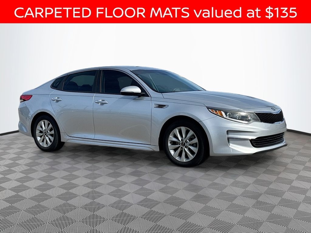 Matt Bowers Nissan of South Mississippi is proud to offer this gorgeous-looking 2018 Kia Optima in Sparkling Silver This vehicle has passed our comprehensive inspection with flying colors and comes with the following features; 17" Alloy Wheels Package (17" Alloy Wheels), Black Cloth, 4-Wheel Disc Brakes, 6 Speakers, 6.5J x 16" Silver Alloy Wheels, ABS brakes, Air Conditioning, Alloy wheels, AM/FM radio: SiriusXM, Anti-whiplash front head restraints, Apple CarPlay & Android Auto, Brake assist, Bumpers: body-color, Cargo Mat, Cargo Net, Carpeted Floor Mats, Cloth Seat Trim, Delay-off headlights, Driver door bin, Driver vanity mirror, Dual front impact airbags, Dual front side impact airbags, Electronic Stability Control, Emergency communication system, Exterior Parking Camera Rear, Four wheel independent suspension, Front anti-roll bar, Front Bucket Seats, Front Center Armrest, Front reading lights, Fully automatic headlights, Heated door mirrors, Illuminated entry, Knee airbag, Low tire pressure warning, Occupant sensing airbag, Outside temperature display, Overhead airbag, Overhead console, Panic alarm, Passenger door bin, Passenger vanity mirror, Power door mirrors, Power steering, Power windows, Radio data system, Radio: AM/FM/MP3/SiriusXM Audio System, Rear anti-roll bar, Rear Parking Sensors, Rear seat center armrest, Rear window defroster, Remote keyless entry, Security system, Speed control, Speed-sensing steering, Split folding rear seat, Steering wheel mounted audio controls, Tachometer, Telescoping steering wheel, Tilt steering wheel, Traction control, Trip computer, Turn signal indicator mirrors, and Variably intermittent wipers. Black Cloth.