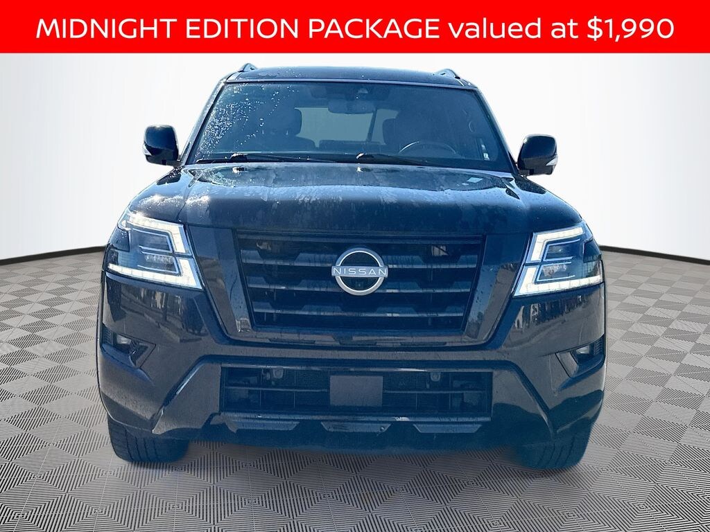 Matt Bowers Nissan of South Mississippi is proud to offer this fantastic-looking 2023 Nissan Armada in Super Black This vehicle has passed our comprehensive inspection with flying colors and comes with the following features; Captain's Chairs Package (2nd Row Captain's Chairs and 2nd Row Center Console w/Padded Armrest), Midnight Edition Package (20" Wheels, 20" x 8J Aluminum Alloy Wheels, Auto-Dimming Exterior Mirror w/LED Turn Signals, Black Painted Grille, Black Painted Roof Rails, Cargo Mat & Midnight Edition Floor Mats, Front & Rear Lower Center Bumper Fascias, Leather Appointed Seat Trim, and Rear LED Lamps w/Black Paint Finisher), 13 Speakers, 2.94 Axle Ratio, 3rd row seats: split-bench, 4-Wheel Disc Brakes, ABS brakes, Air Conditioning, Alloy wheels, AM/FM radio: SiriusXM, Anti-whiplash front head restraints, Auto High-beam Headlights, Auto tilt-away steering wheel, Auto-dimming door mirrors, Auto-dimming Rear-View mirror, Auto-leveling suspension, Automatic temperature control, Bose 13-Speaker Premium Audio System, Brake assist, Bumpers: body-color, Delay-off headlights, Driver door bin, Driver vanity mirror, Dual front impact airbags, Dual front side impact airbags, Electronic Stability Control, Emergency communication system: NissanConnect Services, Exterior Parking Camera Rear, Four wheel independent suspension, Front anti-roll bar, Front Bucket Seats, Front Center Armrest, Front dual zone A/C, Front fog lights, Front reading lights, Fully automatic headlights, Garage door transmitter: HomeLink, Heated door mirrors, Heated Front Bucket Seats, Heated front seats, Heated steering wheel, Illuminated entry, Knee airbag, Leather Shift Knob, Leather-Appointed Seat Trim, Low tire pressure warning, Memory seat, Midnight Edition Floor Mats & Cargo Mat, Navigation System, NissanConnect featuring Apple CarPlay and Android Auto, Occupant sensing airbag, Outside temperature display, Overhead airbag, Overhead console, Panic alarm, Passenger door bin, Passenger vanity mirror, Power door mirrors, Power driver seat, Power Liftgate, Power moonroof, Power passenger seat, Power steering, Power windows, Premium audio system: Bose, Radio: NissanConnect w/SiriusXM, Rear air conditioning, Rear anti-roll bar, Rear reading lights, Rear seat center armrest, Rear window defroster, Rear window wiper, Reclining 3rd row seat, Remote keyless entry, Security system, Speed control, Speed-sensing steering, Speed-Sensitive Wipers, Split folding rear seat, Spoiler, Steering wheel memory, Steering wheel mounted audio controls, Tachometer, Telescoping steering wheel, Tilt steering wheel, Traction control, Trip computer, Turn signal indicator mirrors, Variably intermittent wipers, Voltmeter, and Wheels: 20" x 8J Painted Alloy.