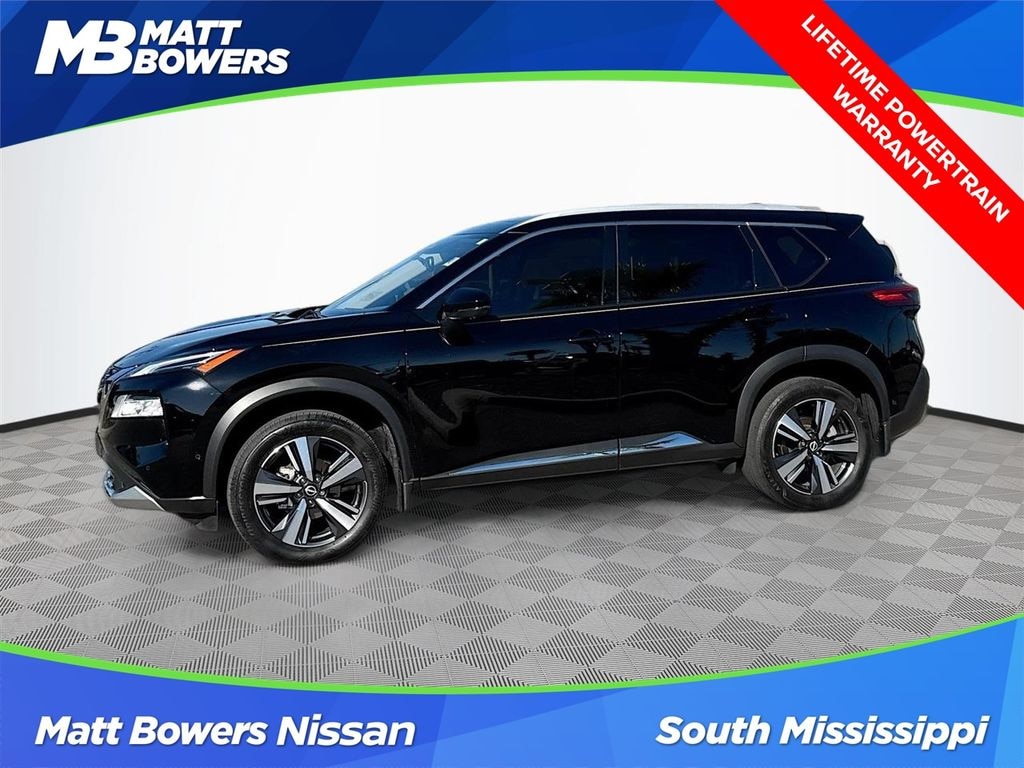 Matt Bowers Nissan of South Mississippi is proud to offer this great 2023 Nissan Rogue in Super Black This vehicle has passed our comprehensive inspection with flying colors and comes with the following features; 10 Speakers, 19" Aluminum Alloy Wheels, 4-Wheel Disc Brakes, 5.604 Axle Ratio, ABS brakes, Air Conditioning, Alloy wheels, AM/FM radio: SiriusXM, Auto High-beam Headlights, Auto-dimming Rear-View mirror, Automatic temperature control, Black Splash Guards (Set of 4), Bose Premium Audio System, Brake assist, Bumpers: body-color, Chrome Rear Bumper Protector, Delay-off headlights, Driver door bin, Driver vanity mirror, Dual front impact airbags, Dual front side impact airbags, Electronic Stability Control, Emergency communication system: NissanConnect Services, First Aid Kit, Floor Mats w/2-Piece Cargo Area Protector, Four wheel independent suspension, Front anti-roll bar, Front Bucket Seats, Front Center Armrest, Front dual zone A/C, Front reading lights, Fully automatic headlights, Heated door mirrors, Heated Front Bucket Seats, Heated front seats, Heated steering wheel, Illuminated entry, Knee airbag, Leather steering wheel, Low tire pressure warning, Memory seat, Navigation system: NissanConnect Navigation, NissanConnect featuring Apple CarPlay and Android Auto, Occupant sensing airbag, Outside temperature display, Overhead airbag, Overhead console, Panic alarm, Passenger door bin, Passenger vanity mirror, Power door mirrors, Power driver seat, Power Liftgate, Power moonroof, Power passenger seat, Power steering, Power windows, Quilted Semi-Aniline Leather Seat Trim, Radio data system, Radio: AM/FM NissanConnect w/Navigation, Rear anti-roll bar, Rear reading lights, Rear seat center armrest, Rear side impact airbag, Rear window defroster, Rear window wiper, Remote keyless entry, Security system, Speed control, Speed-Sensitive Wipers, Split folding rear seat, Spoiler, Steering wheel mounted audio controls, Tachometer, Telescoping steering wheel, Tilt steering wheel, Traction control, Trip computer, Turn signal indicator mirrors, and Variably intermittent wipers.